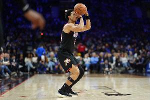 體育資訊12月3日訊 NBA常規賽,76人半場66-54領先奇才。