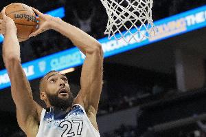 第一節,森林狼中鋒戈貝爾高效發揮,打滿12分鐘3投3中,罰球4中4拿到10分6籃板1助攻1搶斷,正負值+6。