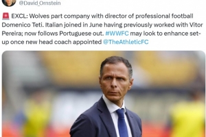 報道稱這位意大利總監于今年6月加入球隊,此前曾與主帥佩雷拉共事,現在他跟隨葡萄牙主帥的腳步離開了俱樂部。狼隊可能會在新任主教練確定后進一步調整球隊架構。