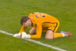 英超第14輪,利物浦1-1戰(zhàn)平桑德蘭。比賽第94分鐘,桑德蘭錯失絕殺機會,桑德蘭門將羅夫斯大腳制造單刀機會,伊西多過掉阿利松后打門被小基耶薩門線解圍,羅夫斯本來高舉雙手準備慶祝,最后只能跪地怒捶草皮。