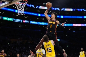 在以杰倫-約翰遜為首的這支老鷹隊里,雖然沒有了特雷-楊的推動,老鷹隊的場均回合數也并沒有比之前變得更快,但在有特雷楊的時候,他們其實就只是在單純的打快,有很大商業互刷的嫌疑,而在沒有了特雷-楊這個致命的防守軟肋之后,老鷹隊的快攻則更多來自于防成之后的反擊。