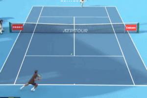 今年中網(wǎng)首輪對陣卡佐的比賽中,商竣程打出了網(wǎng)前背后擊球銜接正手暴力制勝分的精彩表現(xiàn)。