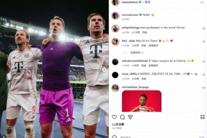 體育資訊11月5日訊 拜仁在本輪歐冠焦點戰2-1力克巴黎,諾伊爾在賽后通過社媒慶祝勝利。