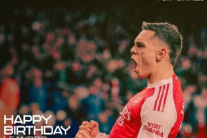 阿森納官方社媒曬出為特羅薩德制作的生日海報,配文:“生日快樂,萊安德羅!”