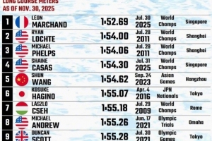 體育資訊12月4日日訊 據知名游泳媒體SwimSwam統計,在200米混合泳項目歷史最快總排名中,汪順1分54秒62的成績排名歷史最快第五。