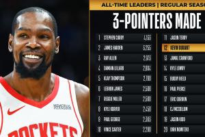 本場比賽,杜蘭特達成兩項里程碑,除了生涯突破31000分外,他的三分命中數(2223)也超過賈馬爾·克勞福德(2221),獨享歷史第12名。