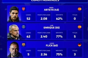 體育資訊12月6日訊 德國(guó)轉(zhuǎn)會(huì)市場(chǎng)列出了2025年最佳教練候選名單,阿爾特塔、恩里克、弗里克、孔帕尼在列。