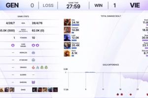 體育資訊12月6日訊 Kespa杯GEN對陣VIE的比賽,GEN被VIE暴打,雙方人頭比4-28。