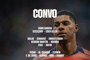 前鋒:費蘭·托雷斯、萊萬、亞馬爾、拉菲尼亞、拉什福德、巴德吉