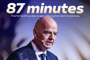 世界杯抽簽儀式于今晨舉行,據天空體育統計,本次抽簽儀式從開始到抽出第一支球隊共耗時87分鐘,幾乎和一場足球比賽時間一樣長。