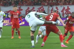 上半場補(bǔ)時(shí)階段,恩加德烏飛踢卡多索腰部,裁判出示黃牌。