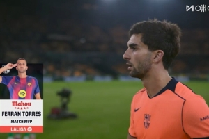 體育資訊12月7日訊 西甲第15輪比賽,巴薩在客場以5-3的比分戰(zhàn)勝貝蒂斯。本場比賽,費(fèi)蘭·托雷斯為紅藍(lán)軍團(tuán)上演帽子戲法,是球隊(duì)取勝的大功臣。賽后,費(fèi)蘭·托雷斯被西甲官方評(píng)為全場最佳球員。