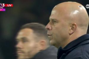 體育資訊12月07日訊 本輪英超,利物浦3-3遭利茲聯絕平。比分變為3-3后,鏡頭給到場邊的斯洛特。