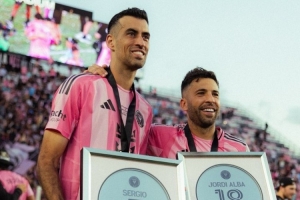 布斯克茨、阿爾巴本賽季結(jié)束后退役,兩人賽后領(lǐng)取了紀(jì)念獎(jiǎng)?wù)拢麄兊穆殬I(yè)生涯迎來(lái)圓滿的結(jié)局。