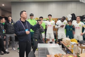 足協(xié)杯決賽賽前,北京國安足球俱樂部董事長周金輝來到球隊(duì)更衣室,為球隊(duì)送上鼓勵(lì)。