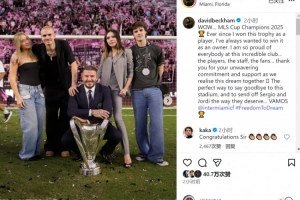 邁阿密國際老板貝克漢姆社媒曬家人與獎(jiǎng)杯的合照,并寫道:”2025年美職聯(lián)冠軍??自從作為球員捧起這座獎(jiǎng)杯后,我就一直渴望以老板身份再次奪冠。”