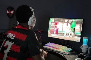 體育資訊12月7日訊 維尼修斯更新社媒動態(tài),曬出身穿弗拉門戈球衣打游戲的照片。