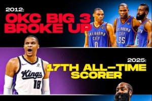 威少空切迅速彈起空中點籃命中!生涯得分超越鄧肯升至歷史第17!