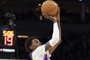談及麥克丹尼爾斯中距離投籃的出色表現,芬奇表示:“他具備絕佳的身高條件,手感非常柔和,投籃弧線很高。他擁有一名優秀中距離射手的所有特質 —— 能穩定找到自己的投籃點,動作從容可控,彈跳能力出色,起跳后很難有人能干擾到他的投籃。”
