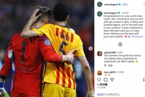 特爾施特根寫道:布斯克茨,祝賀你擁有世界級(jí)的職業(yè)生涯。看到你以又一座獎(jiǎng)杯結(jié)束職業(yè)生涯,真是令人驚嘆!你是巴薩和足壇傳奇,也是有史以來最出色的中場之一。與你多次并肩作戰(zhàn)是我的榮幸,祝你在人生的下一個(gè)篇章中一切順利!