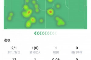 射門2次射正1次,嘗試過人1次,丟失球權12次,約為1次,預期進球0.06球