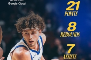 賽后,勇士官方曬出波杰姆斯基的數據海報,將其評選為本場最佳球員。