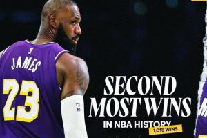 體育資訊12月8日訊 NBA常規賽,湖人客場112-108擊敗76人。詹姆斯收獲了他生涯第1015場常規賽勝利,獨居歷史第二。