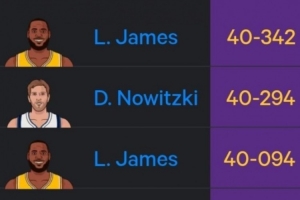 至此,詹姆斯成為了史上砍下29+年紀最大的球員(40歲342天),力壓諾維茨基(40歲294天)。且前十榜單中9次是詹姆斯。
