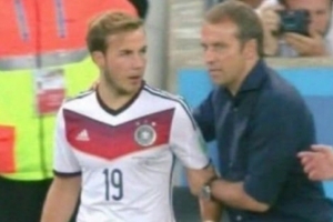 在格策出場之前,正是弗里克在場邊拿著戰術板對他進行了講解,說明了球隊對他的戰術要求。而格策在替補出場后也不負眾望,在加時賽第113分鐘,格策胸部停球后左腳射門得分,幫助德國1-0戰勝梅西領銜的阿根廷,成功奪得冠軍。