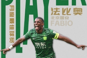 體育資訊12月8日訊 2場比賽攻入6球的國安外援法比奧,當(dāng)選為中超11月最佳球員。