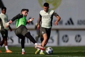 今日,白衣軍團在體育城進行訓練,備戰本場比賽。皇馬官網曬出球隊訓練圖,卡馬文加、塞巴略斯在列。