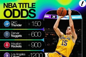 體育資訊12月8日訊 博彩網站更新了本賽季奪冠賠率,雷霆、掘金、火箭、湖人前四,具體如下: