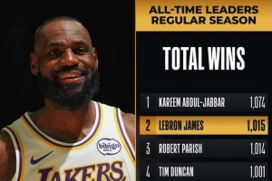 本場勝利是詹姆斯生涯中的第1015勝,他超越了羅伯特·帕里什,升至NBA球員歷史勝場第二(僅次于賈巴爾的1074勝)。