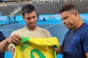 羅納爾多與西班牙網球選手阿爾卡拉斯打網球,兩人親切交流,羅納爾多還將自己的巴西隊9號簽名球衣贈送給阿爾卡拉斯。