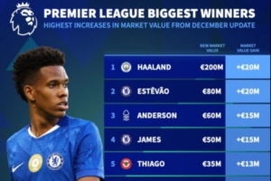 體育資訊12月9日訊 德轉更新英超球員身價,哈蘭德、埃斯特旺身價均+2000萬歐,為本次身價上漲最多的英超球員。
