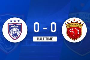 上半場比賽結束,上海海港0-0柔佛新山。