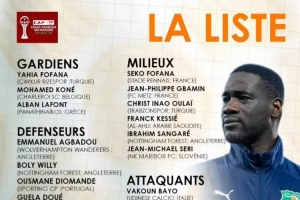 中場(chǎng):塞科·福法納(雷恩)、格巴明(梅斯)、歐萊(特拉布宗體育)、凱西(吉達(dá)國(guó)民)、桑加雷(諾丁漢森林)、塞里(馬里博爾)
