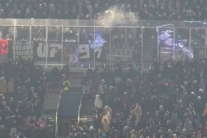 法蘭克福球迷還兩次向巴薩球迷所在的看臺投擲煙火。