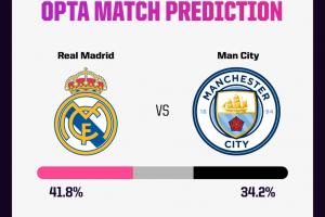 體育資訊12月10日訊 北京時間12月11日凌晨4點,歐冠聯賽階段第6輪皇馬將在主場大戰曼城,賽前數據機構Opta略微看好皇馬取勝。