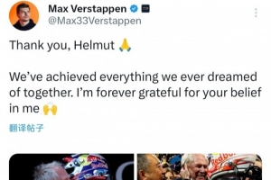 維斯塔潘更新了個人社媒,曬出了自己與馬爾科的合照并配文:謝謝你,赫爾穆特。我們在一起實現了所有的夢想,我將永遠感激你對我的信任。