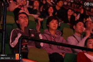 目前陳熠和朱雨玲的比賽進行到第六局,陳熠3-2領先。