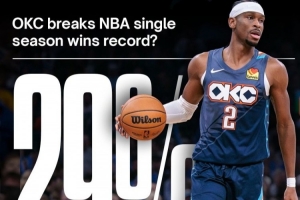 賽后預測機構Polymarket更新了雷霆打破73勝常規(guī)賽勝場紀錄的概率——29%。