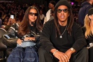 今日,美國著名說唱歌手JAY-Z帶女兒BLUE來到場邊觀戰湖人。