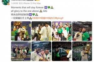 體育資訊12月11日訊 在個人社媒,國安前鋒法比奧慶祝足協杯奪冠。