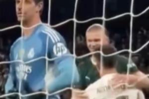 體育資訊12月11日訊 歐冠第6輪,皇馬主場1-2不敵曼城,場邊鏡頭記錄下了皇馬一次角球防守中有趣的畫面。