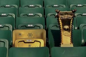 國安離世球迷楊雪的金色專屬座椅,與金色的獎(jiǎng)杯并肩