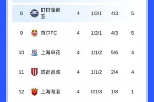 體育資訊11月05日訊 今日亞冠申花客場1-3不敵馬來西亞球隊柔佛新山,本輪戰罷,最新亞冠東亞區積分榜如圖。