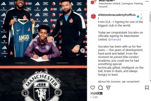 體育資訊12月12日訊 曼聯官方宣布簽下13歲中衛索克拉蒂斯(Socrates)。