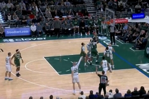 GIF-凱爾特人主將們在替補席滿臉難看,杰倫·布朗挨個擊掌鼓勵