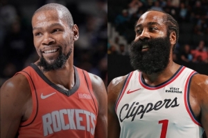 比賽過程中,火箭隨隊記者Jackson Gatlin發推寫道:“看到凱文·杜蘭特身穿火箭球衣對陣身披快船戰袍的詹姆斯·哈登,感覺真是奇怪。”